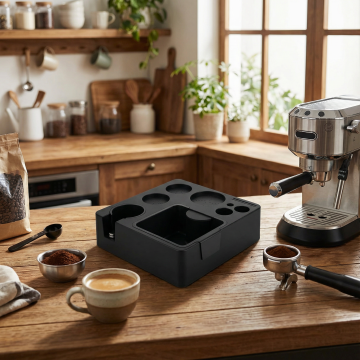 现代感金属风咖啡机,搭配暖黄桌面与绿植光影,融合工业质感与温馨氛围,轻拟物设计展现简约主义美学,传递时尚舒适的生活仪式感。