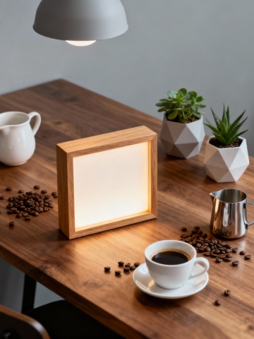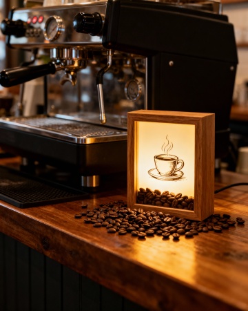 产品添加到场景里,保持商品细节不变,需要有手磨咖啡元素