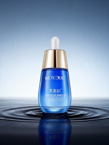 水下实景感与3D重拟物风结合,清透玻璃瓶悬浮于海洋之中,气泡环绕,贝壳珍珠点缀沙底,营造出柔和唯美、优雅自然的虚拟自然意境。