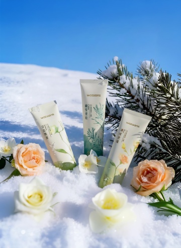 给三个参考图融合成一个主图,参考图要跟背景图融合,不能有违和感,并对生成图进行精修;主题是冬日护肤,带有冬日护肤的元素在,可调整产品的摆放方式及添加适当的展示台等元素,禁止修改参考图上的产品样式