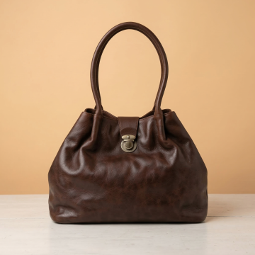 现代感皮质托特包,简约主义设计,光影交错凸显质感,商务与优雅并存,重拟物风实景呈现,时尚大气。