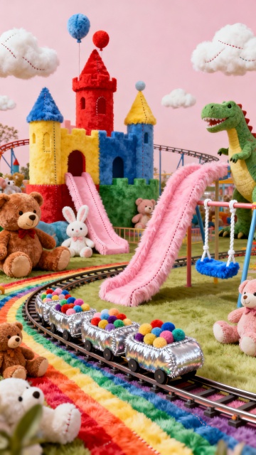 像素风梦幻城堡,卡通人物欢聚,波普艺术色彩,虚拟现实体验。