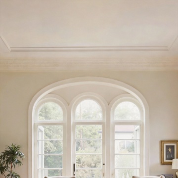 极简主义室内场景,米白色墙壁搭配浅色木地板,左侧窗台上摆放一盆绿色植物,阳光透过窗户在墙面和地面投射出清晰的窗格阴影,光线柔和明亮,整体氛围宁静舒适,空间宽敞通透,不同风格的室内背景元素(如北欧风家具、日式隔断、工业风灯具、复古装饰画等)自然融入场景,保持与原图一致的光影质感和色彩基调。