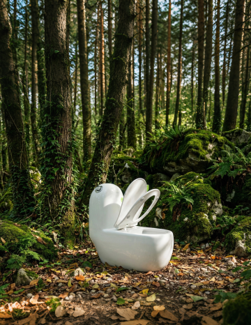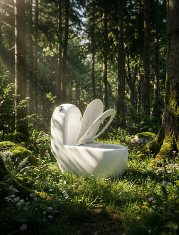 静谧湖畔,现代极简加湿器置于岩石之上,水雾轻扬,倒影清晰,融合自然与科技,呈现清爽清透的轻拟物风实景画面。