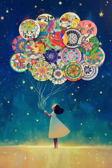 璀璨星光在深邃的宇宙背景中闪烁,呈现出梦幻的水彩风格。画面中,星星以柔和的笔触散布,大小不一,亮度各异,营造出层次感。深蓝色的夜空带有渐变效果,从底部的靛蓝逐渐过渡到顶部的墨黑,其间点缀着淡淡的紫色和粉色星云,增添了浪漫氛围。整体色调温暖而神秘,星光仿佛在流动,给人一种宁静而悠远的感觉。
