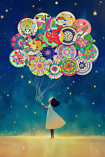 一片深邃神秘的星空,无数闪烁的星光点缀其间,呈现出梦幻般的水彩画风格。星星的光芒带着柔和的光晕,色彩以温暖的粉紫色调为主,穿插着淡淡的蓝色和金色,营造出浪漫而宁静的氛围。星空中间是一张巨大人脸,眼睛微睁星星闪烁在其中,紫色的云彩围绕在人脸附近,被星光映照出柔和的轮廓,整体画面充满了诗意的梦幻感,给人一种置身于童话般星空下的奇妙体验。
