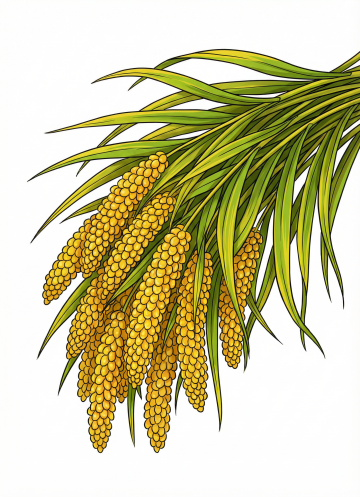 手绘风格插画,画面主体为多株金黄色麦穗,麦穗颗粒饱满呈纺锤形,麦芒细长尖锐,麦秆挺拔略带自然弯曲,叶片修长边缘有细微锯齿,整体色彩以明亮的橙黄色为主色调,带有渐变的暖色调光影效果,笔触细腻带有手绘线条感,背景为纯白色,构图采用从左下角向右上角延伸的自然生长态势,画面简洁明快,充满丰收的喜悦氛围,插画风格清新自然,细节刻画丰富,具有装饰性和艺术感。
