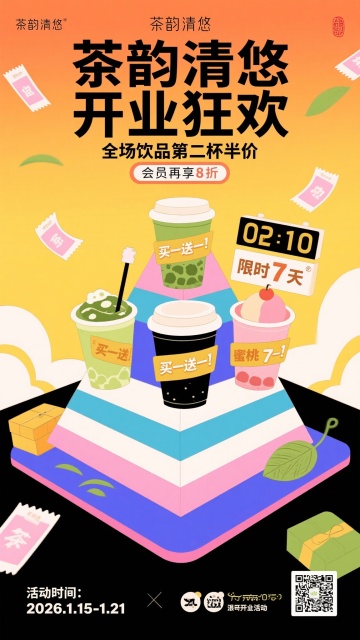清新插画风,卡通拟人饮品,色彩明亮,趣味十足,展现夏日清凉感。