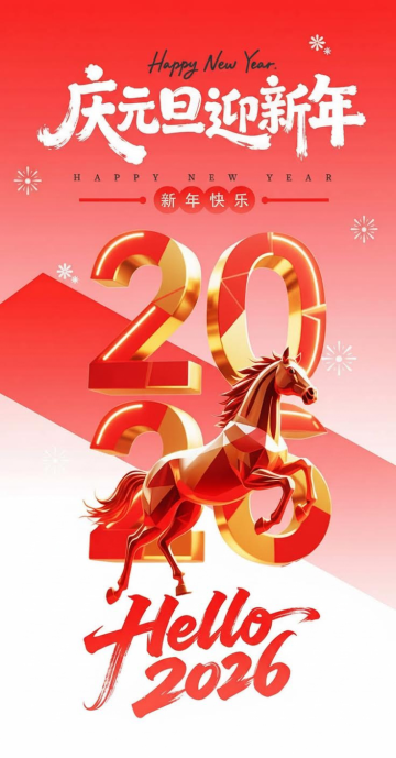 国潮风3D设计,梅花绽放成“2026”,鎏金文字“新岁安康”熠熠生辉,中式庭院灯火通明,光影流动,水彩质感花瓣飘落,喜庆梦幻交织。