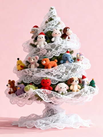 软3D风圣诞树,毛发生长质感搭配粘土风格装饰,萌趣卡通元素营造甜蜜可爱氛围,暖光点缀传递温馨喜庆节日感。