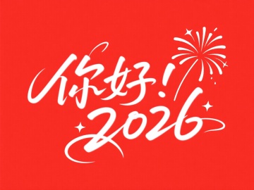 红底白字双色设计,大字风手写体搭配烟花元素,喜庆感十足,印刷风呈现新年祝福,迎接2026。