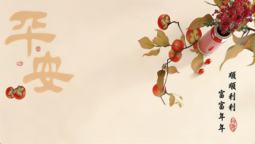 国潮风书法大字“旦夕皆喜”,配以水墨梅花枝,红印“福”字点缀,尽显中式喜庆韵味。