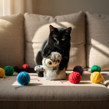 优化这张图,给图片中的宠物玩具重新生成一张宠物玩耍场景图