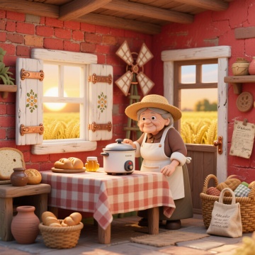 国潮风与软3D结合,剪纸元素融入温馨场景,祖孙共庆中秋国庆,卡通感十足,喜庆祥和。
