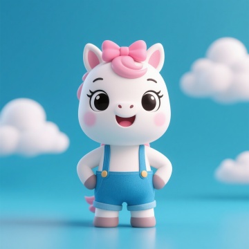 软3D粘土风小马,萌趣可爱,圆润造型搭配大眼微笑,节日氛围十足,适合儿童节或生肖主题设计。