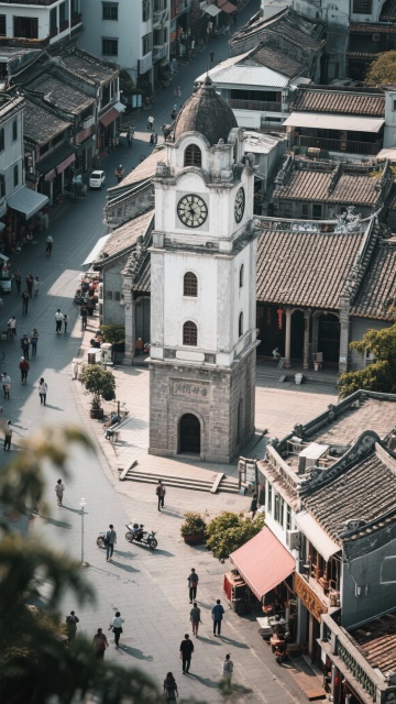 晨光穿透薄雾,洒在古老石制建筑的飞檐翘角上,建筑周围环绕着青苔覆盖的石阶与平静如镜的水面,水面倒映着建筑的轮廓和飘落的花瓣,整体色调以深灰蓝、米白和浅赭石色为主,营造出宁静而高级的历史氛围感,光影柔和,细节丰富,宛如一幅精致的水墨画。