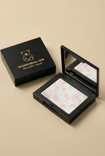 撕纸风拼贴杂志感,柔和粉调腮红轻盈绽放,清透雾面质感呼应时尚美学,营造高级柔美氛围。