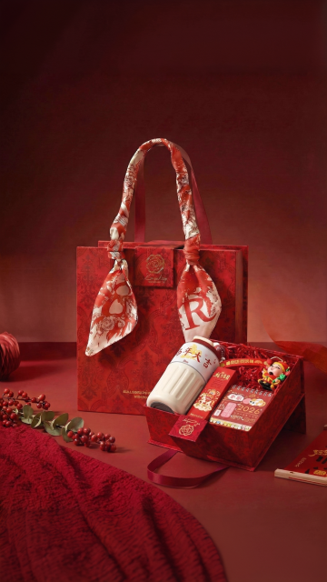国潮风坚果礼盒,拟人化笑脸由坚果拼成,浮雕云纹点缀,喜庆红金配色,中式元素与现代创意融合,节日氛围浓厚。