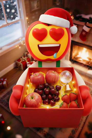 软3D风格的拟人化柿子骑着滑板车,在市集穿梭,充满可爱与趣味感,搭配温暖金黄背景,营造出卡通化的双11节日氛围。