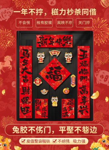 根据我上传的图片,生成两张3:4的电商主图,主标题:创意新年拓印福字。副标题:原创设计|款式新颖|加厚宣纸|制作简单。背景需要新年氛围