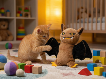 给这张图片中的宠物产品重新生成一张宠物玩耍场景