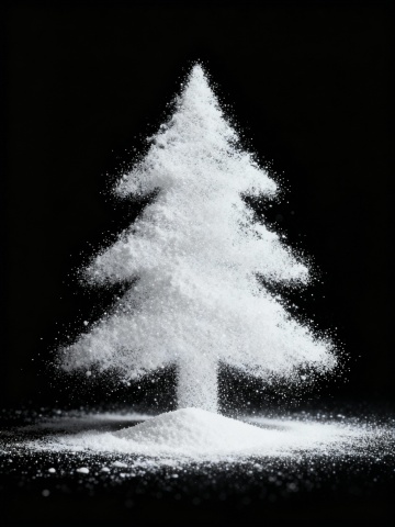 梦幻粒子构成的圣诞树,抽象单色设计,虚拟自然意境,节日氛围静谧而神秘。