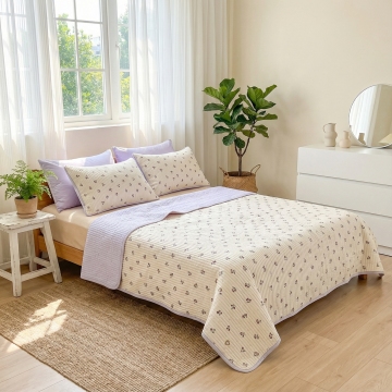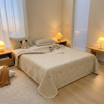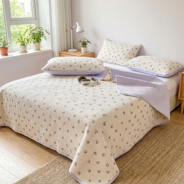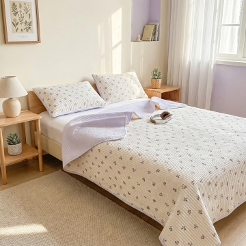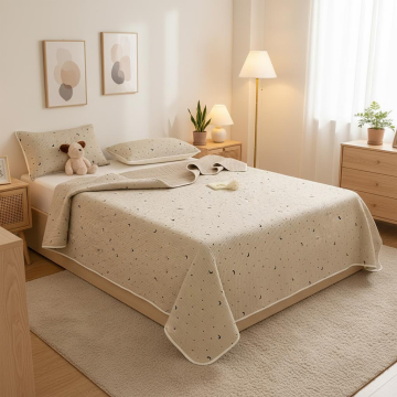 不改变床品所有细节 为图中床品生成温馨卧室场景