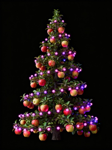 霓虹灯风3D圣诞树,炫彩光影缠绕,波普艺术感十足,虚拟现实质感,喜庆酷炫,节日氛围拉满。