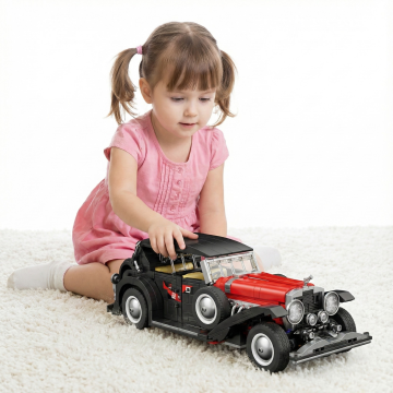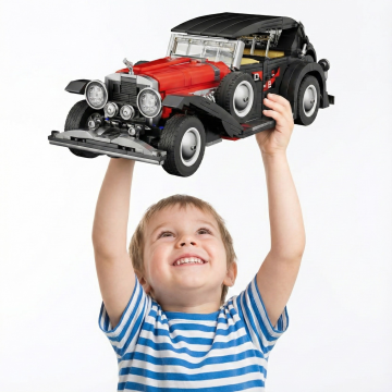 生成10张小孩玩这个小汽车的场景。白底