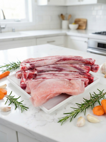 把图1产品生成一张合适的羊肉拍摄场景,不出现人物,图片比例4:3