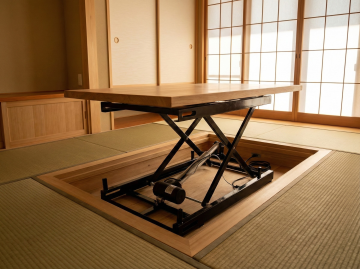 根据参考图帮我生成升降展品柜台的场景图