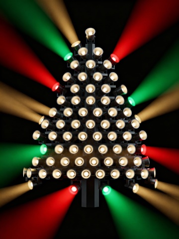霓虹灯风3D圣诞树,炫彩光影缠绕,波普艺术感十足,虚拟现实质感,喜庆酷炫,节日氛围拉满。