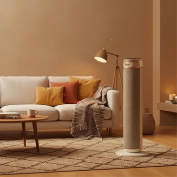 3D重拟物风格,金属与塑料质感结合,暖光营造温馨舒适氛围,实景感强,柔和光线传递冬日温暖。