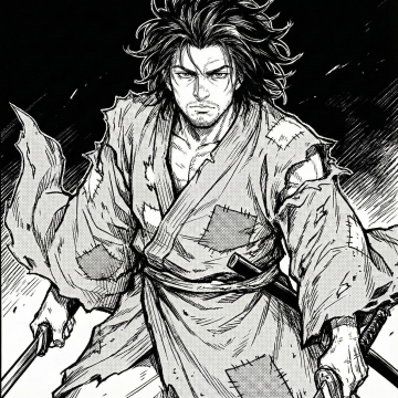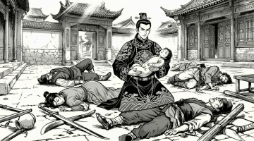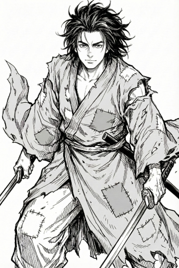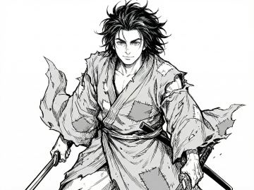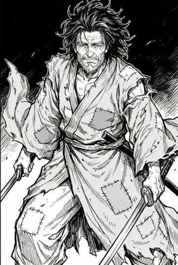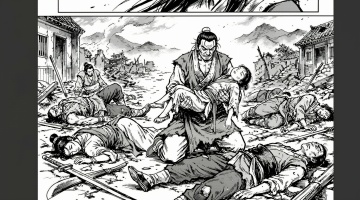 中式感与动漫风融合,热血场景中巨汉怒拍桌案,竹筷飞溅,水墨质感线条勾勒,漫画式夸张表情传递强烈冲击感。