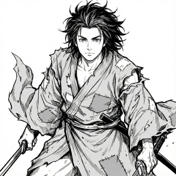 古典中式插画风,水墨山水背景,人物手持折扇,尽显雅致韵味。