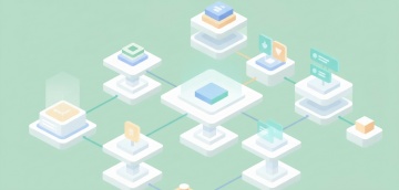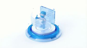 未来感与科技感交织的3D风插画,采用清透玻璃质感与轻拟物设计,展现数据流动与智能互联,几何结构突出体积感,蓝色调传递高效与现代。