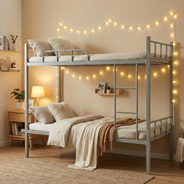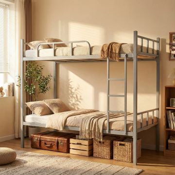 3D渲染的现代简约风格卧室,低饱和度墨绿色与暖灰色为主色调,柔和漫射自然光从右侧大面积落地窗洒入,木质地板温润有光泽,带有细微纹理。画面以床为视觉中心,床头采用浅灰色软包设计与深绿色墙面形成对比,床头两侧是黑色金属支架的玻璃台面床头柜,各放置一盏造型简约的白色球形台灯。床上铺着深绿色与灰色条纹的床单,搭配几个不同材质的灰色抱枕和一条米色针织毯随意搭在床尾。床尾正对着一面悬挂着抽象几何线条装饰画的墙,画框为黑色细边框。左侧墙面嵌入一整面墙的深灰色推拉门衣柜,衣柜底部设计有开放式展示格,摆放着几本精装书和一个小型绿植盆栽。右侧窗边设有一个浅灰色布艺单人沙发,沙发旁是一个原木色小圆几,上面放着一个白色陶瓷花瓶,里面插着几支干花。地面铺着一块浅灰色短绒地毯,地毯上随意散落着一本翻开的杂志和一个编织篮。整个空间光影层次丰富,阴影柔和,营造出宁静舒适且极具现代设计感的休憩氛围,视觉层级清晰,信息传达简洁高效,符合现代都市年轻人群的审美需求。