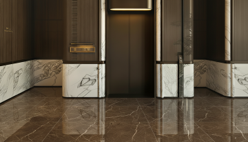 俯瞰视角,极简主义风格客厅以深邃的墨黑与温润的原木色为基调,倾斜45度的构图展现出几何切割般的空间层次感。清晨的冷蓝色光线从整面无框玻璃墙斜射而入,在深灰色微水泥地面上投下窗格的几何阴影,窗外是被薄雾笼罩的城市天际线剪影。中央悬浮着一个由黑色金属框架与烟熏玻璃台面构成的不规则多边形茶几,周围环绕着三张浅灰色模块式布艺单人沙发,每个沙发配有一个芥末黄皮质靠垫。右侧墙面是整面的胡桃木饰面板,内嵌线性LED灯带勾勒出隐藏式储物空间的轮廓。天花板采用悬浮式设计,中央垂挂着一个由12个不规则玻璃球体组成的艺术吊灯,在地面投射出破碎的光斑图案。空间角落摆放着一株大型琴叶榕,其深绿色叶片与整体冷色调形成鲜明对比。地面铺设着一块巨大的米白色羊毛手工编织地毯,边缘处有渐变的黑色几何图案。整体氛围呈现出一种冷静的奢华感,光线在不同材质间的反射创造出丰富的视觉层次,既保留了原空间的通透感,又通过色彩与光影的转变赋予其北欧极简的清冷美学。