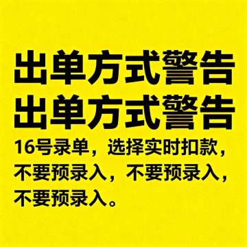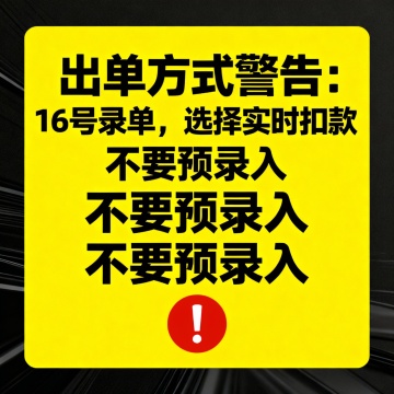 出单方式警告:16号录单,选择实时扣款,不要预录入,不要预录入,不要预录入