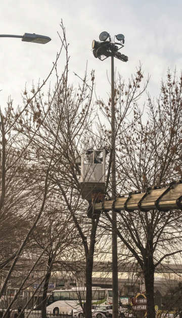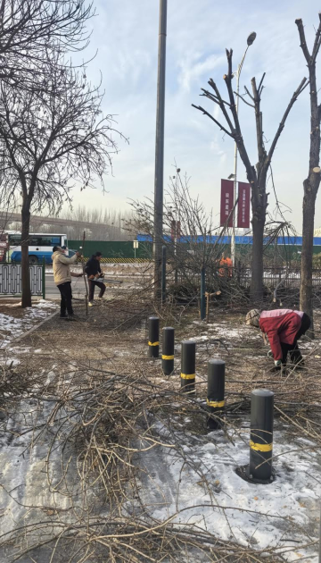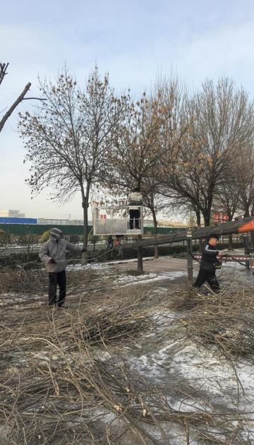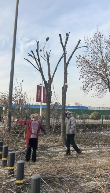 冬天的街景,道路两旁有高达金黄的梧桐树,蓝色的天空,暖暖的阳光照耀在树叶上,路上有行人,毛毡风格,尺寸9:16