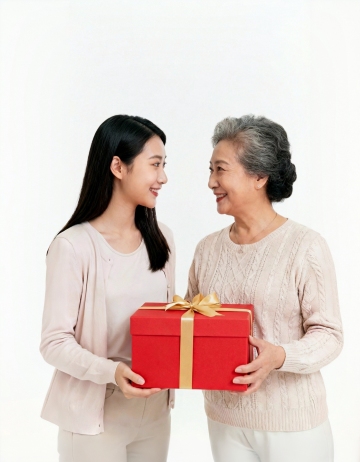 温暖柔和的晨光透过木质窗棂洒入室内,照亮了一对老年夫妇的背影,老先生穿着浅色衬衫,戴着眼镜,左手轻轻搭在身旁穿着碎花上衣的老太太肩上,两人依偎着望向窗外,窗外可见翠绿的树枝,室内窗台上摆放着古朴的陶瓷茶壶、茶杯和一盆红色花卉,整体画面呈现出温馨、宁静、岁月静好的氛围,光影层次丰富,色调温暖偏黄,具有高度写实的质感和细腻的细节刻画。