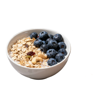 自然光下的极简风格酸奶早餐场景,白色陶瓷杯中盛放着浓稠的白色酸奶,正被从带有木质把手的玻璃量杯中缓缓倒入,酸奶表面漂浮着彩色谷物圈、红色冻干莓果和棕色葡萄干,杯下是白色波纹圆形餐垫,背景中散落着混合坚果与谷物,左侧有一小碗装满燕麦片,右上角是白色酸奶包装盒,前景右下角有一朵白色郁金香,左上角点缀着绿色蕨类植物叶片,整体色调以纯净的白色和米色为基底,搭配食物的自然色彩,光线柔和明亮,阴影细腻,营造出清新、健康、温馨的早晨氛围,构图采用中心聚焦式,突出酸奶倾倒的动态瞬间,画面干净整洁,富有生活气息和食欲感。