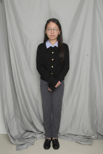 参考图一生成画面:证件照标准样式;保留人物发型和脸型特征,不美颜,外穿奶白米色学院风针织背心,内搭白色翻领长袖衬衫,背心领口有深蓝色、白色和浅灰色条纹装饰;领口处搭配深色格纹领带,淡妆,发丝柔顺有光泽;居中平视正面视角,纯正面,胸部以上半身像;去除一切饰品;光线均匀柔和,画质清晰,表情自然,头部完整,去除人物之外的所有元素,简约白色背景;参考图二的人物占位和比例,严格按照图一的内容生成。
