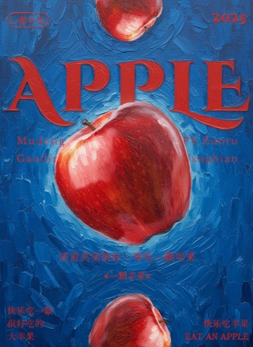 一堆鲜红饱满的苹果,表面覆盖着晶莹剔透的水珠,翠绿的叶子点缀其间,采用印象派风格,色彩明快鲜艳,笔触奔放富有动感,光影斑驳陆离,营造出充满活力的艺术氛围,画面整体呈现出热烈而富有生命力的感觉。