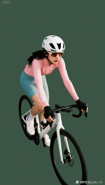 一个戴着浅紫色帽子的小女孩,穿着卡其色T恤和主色调为紫色侧面绿白相间的竖条纹,正骑在一辆粉色儿童山地车上,停在铺满碎石的户外小路上,背景是模糊的城市建筑和绿色植被,阳光明媚,整体风格自然清新,采用35mm焦距写实摄影,侧逆光拍摄,车身金属质感与碎石路面纹理清晰,色调以米白、军绿、浅灰为主,画面生动活泼充满童趣。