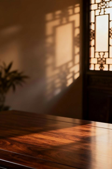 写实风格摄影,画面整体采用柔和的靛蓝色与暖橙色对比色调,一位约四十岁左右的中年男子,身着象牙白传统中式长衫,正专注地在古朴的木质茶桌前进行茶道仪式,他手持茶勺,神情沉静而专注,眼神温和。背景是深色木质博古架,上面整齐摆放着多个靛蓝色与橙色渐变的陶瓷茶罐,左侧悬挂着一盏散发暖橙色光芒的中式纸灯笼,灯笼上有模糊的书法文字。茶桌上摆放着靛蓝色的茶碗、深色陶制茶炉、茶则、茶针等茶道器具,还有一本打开的线装古籍。整体光影柔和,侧逆光勾勒出人物的轮廓,营造出宁静、典雅而略带现代感的氛围,画面构图遵循三分法,人物位于右侧黄金分割点,前景茶具清晰,背景书架稍显虚化,形成自然的景深效果,色彩和谐统一,细节丰富,质感细腻,展现出传统茶道文化的韵味与中年男子沉稳内敛的气质。