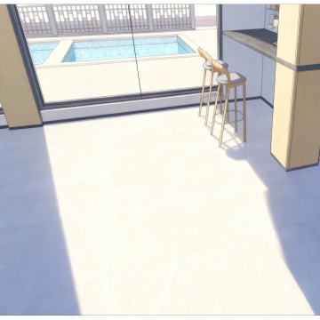 极简主义风格室内设计,以浅灰色和米白色为主色调,大面积落地窗引入柔和自然光,光线在地面和墙面形成清晰的光影层次。浅灰色布艺沙发搭配同色系靠垫,线条简洁流畅,下方铺设浅米色条纹地毯,质感细腻。沙发旁是金属框架圆形小茶几,墙面设有简约的一字型置物架,摆放小型装饰画。整体空间布局遵循对称美学,注重留白,营造出宁静、通透、高级的氛围,地面采用大尺寸浅色瓷砖,接缝整齐,光脚触感舒适,窗外可见绿色植物,增添自然生机。