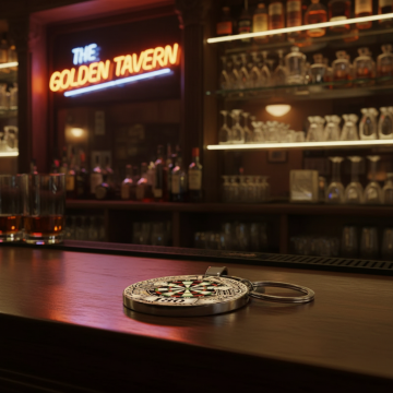 霓虹光线下顾客举杯欢笑,牙齿十字架饰品动态反光,背景人群虚化突出主体自信姿态。,十字架牙齿饰品缩小,可以参考图片素材的比例