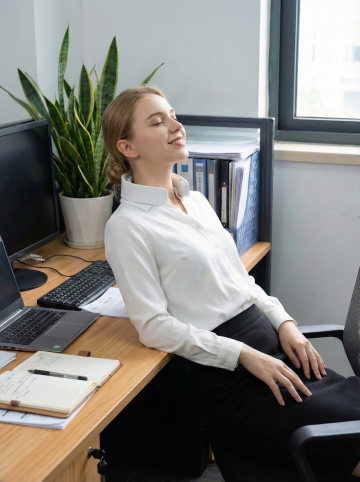 写实风格瑜伽女性,保持左腿在前、右腿在后的弓步姿势,左手自然下垂,右手向上伸展掌心朝前,头部微微后仰望向天空,高扎的黑色发髻,身着白色紧身背心和紫色紧身瑜伽裤,赤脚站立于瑜伽垫上。秋季户外环境,背景为渐变的蔚蓝色天空点缀少量白云,地面铺陈着金黄与橙色的落叶,柔和的秋日阳光从侧上方照射,在人物身上形成清晰的光影层次,温暖的色调营造出宁静舒适的氛围,整体画面构图简洁,主体突出,展现出瑜伽的舒展与自然的和谐之美。
