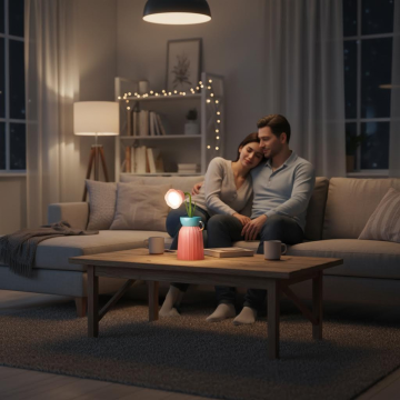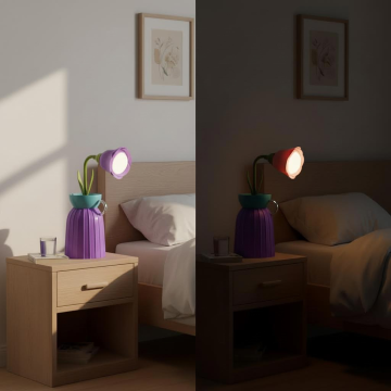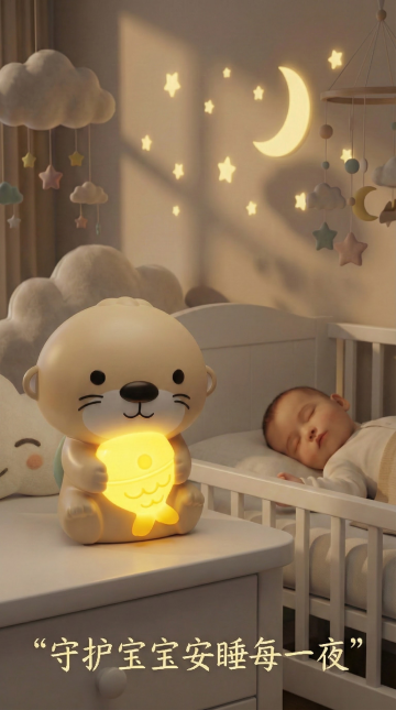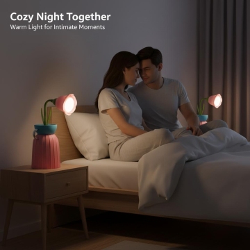 给图片中的产品小夜灯生成4张亚马逊场景图,分别为:母亲起夜给孩子哺乳场景,夜晚睡眠场景,两姐妹夜晚在户外聊天场景,情侣场景